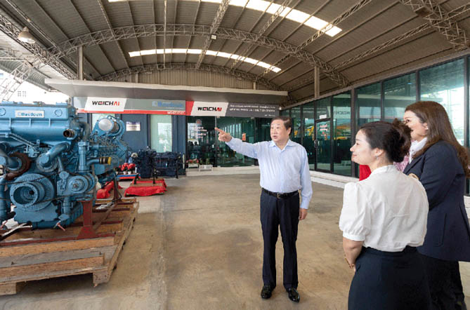 活动前,谭旭光带队现场考察调研位于泰国春武里府的潍柴、山推海外配件中心,与亚洲汽车有限公司CEO阿马拉蓬·塞京女士交流座谈,就进一步拓展商用车、工程机械领域合作达成共识。双方将持续深化全方位合作,携手推出最具竞争力、最适合泰国土壤的定制化产品和服务。