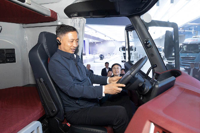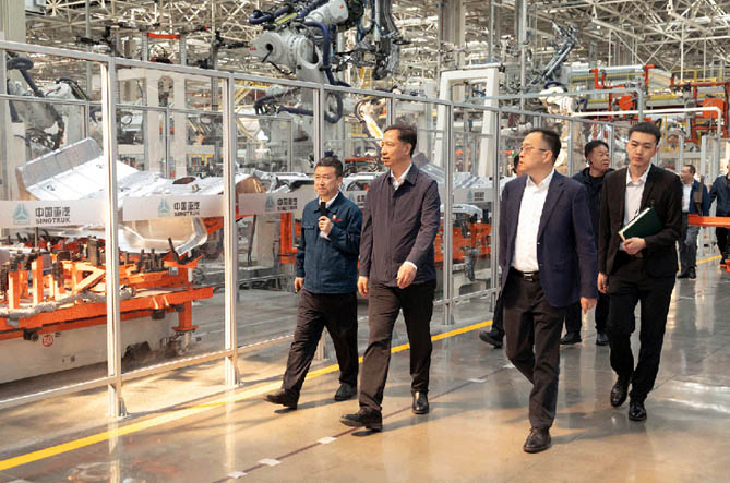 会前,卢东亮一行参观了中国重汽智能网联(新能源)重卡制造基地、山东重工未来科技展厅。