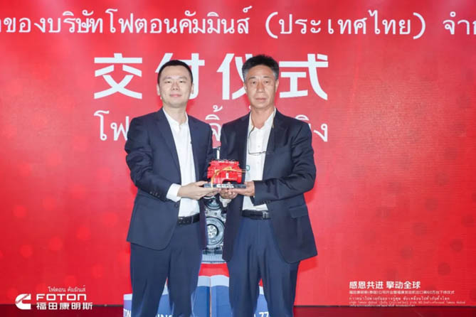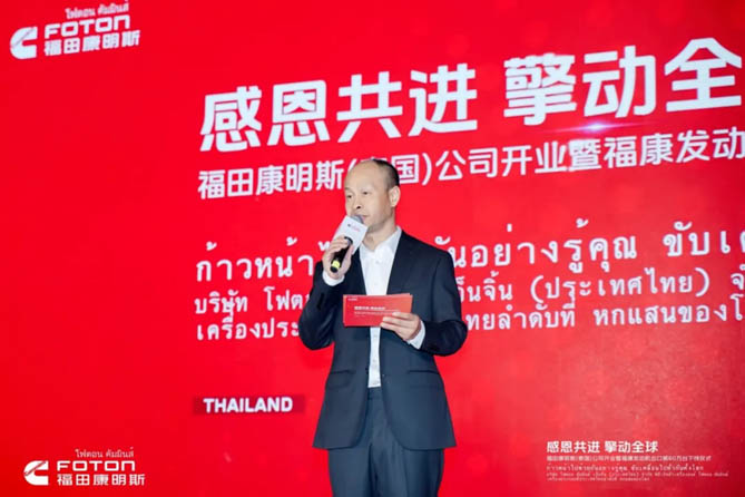 开业典礼上,福田康明斯总经理陈剑表示:“依托双方领先的整车及发动机技术研发、全面布局的销售、服务网络以及北京福田康明斯全球“灯塔工厂”的智造技术,福田康明斯已经为全球100多个国家和地区提供了多元动力解决方案,从裸机出口到助力整车出口,从欧洲、北美到全球市场,从聚焦商用车拓展到非道路应用,福田康明斯持续助力全球用户取得成功。福康泰国公司将共享北京福田康明斯先进的研发技术、共享全球供应链,坚守“零缺陷”质量原则,为全球用户提供高质量的发动机产品和智慧服务。”