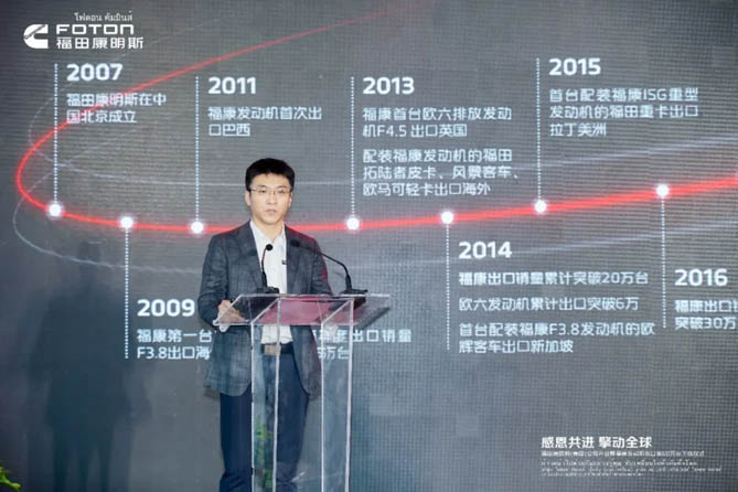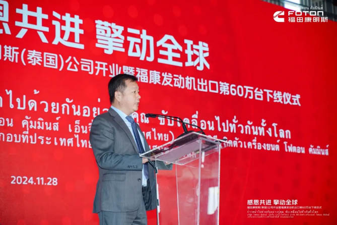 11月28日,福田康明斯(泰国)公司开业暨福康发动机出口第60万台下线活动在泰国春武里府隆重举行。泰国政府海关总署官员、泰国Amata工业园代表,北汽福田、康明斯(中国)投资有限公司以及来自泰国的媒体、亚太康明斯、泰国康明斯等嘉宾、福田康明斯全球供应商合作伙伴们共同见证了这一历史性时刻。