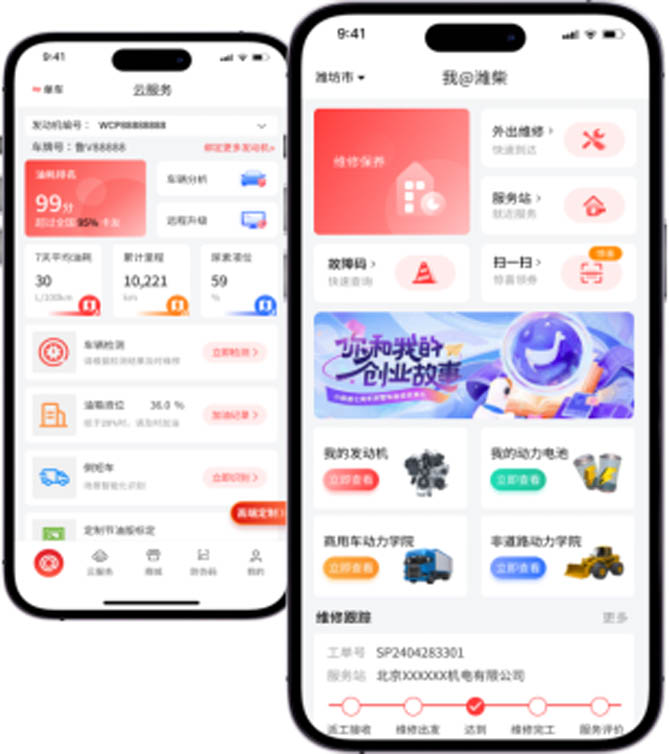 “潍柴同行”APP内容更丰富,功能更全面,集售后服务与销售、交互娱乐于一体,实现了人、车、生活的有效协同。该APP包含智服务、智管理、智养车、智慧购四大管理模块,涵盖260多个功能点、1700余个功能项,支持便捷查询质量信息、一键报修等操作,为客户提供发动机全生命周期的最优服务。