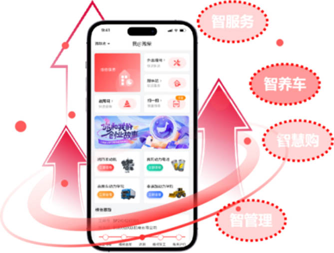 “潍柴同行”APP集销售与售后服务、交互娱乐等功能于一体,包含智服务、智管理、智养车、智慧购四大管理模块,具备260多个功能点、1700余个功能项。基于发动机全生命周期,致力于为客户和渠道提供行业最优、功能最全、性能最好的终端APP,满足不同发动机使用阶段用户的移动使用需求。同时“潍柴同行”APP支持自助故障报修、故障提醒主动修车等功能,将助力潍柴服务实现由被动向主动转型。
