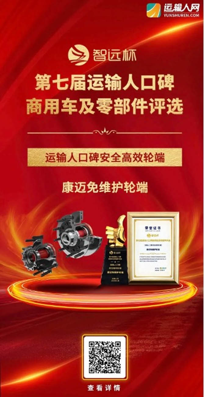 康迈荣获第七届“运输人口碑安全高效轮端”奖