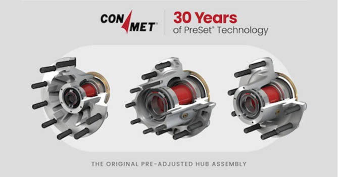 作为康迈推动轮端系统标准升级的重要成果,PreSet®轮端推出后迅速获得行业认可并成为商用车主机厂首选,为后续技术演进奠定了坚实基础。2011年,康迈推出PreSet Plus®轮端总成,在原有PreSet®组件基础上,集成一体式轴头螺母与优化隔套,进一步提升了整体性能。新设计不仅解决了生命周期后期常见问题,也简化了安装与拆卸流程,全面优化用户体验。
