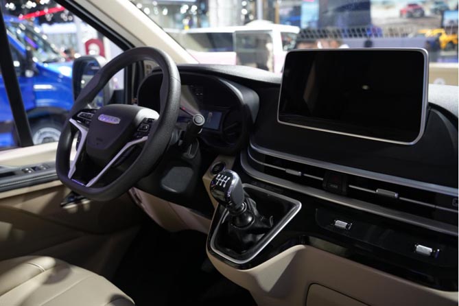 一名跑物流运输的依维柯老用户说:“我刚才坐进车内感受了一把全新得意,感觉依维柯的设计越来越贴心了。首先四幅式多功能方向盘的配置列入了标配,方向盘的按键区域还有定速巡航和车机控制的按键。其次呢,USB和Type-C充电口,随处可见的储物空间、中控区域排挡杆等等,这些配置的便利性在我们长途行车时就能体现出来了。另外一点比较吸引我的就是车辆更智能了,这么大一块高清触控屏看着贵气,信息显示也很清晰!等以后将手机跟大屏连起来,还能在屏幕上使用各种软件,多方便哪!”