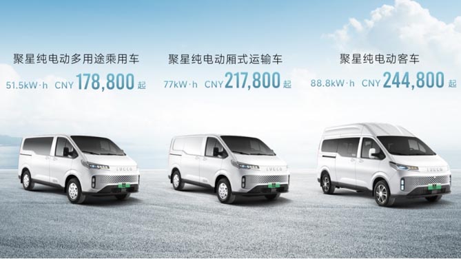 据悉,聚星纯电动多用途乘用车,17.88万元起;聚星纯电动厢式运输车,21.78万元起,聚星纯电动客车,24.48万元起。南京依维柯还为购车用户准备了多重优惠福利,可谓诚意十足。即日起下订依维柯聚星EV系列产品,可尊享包括金融贴息至高6000元、2年8万0息的聚省金融礼;可享4000元置换补贴的聚省焕新礼;首任车主可享车机5年流量权益的星智互联礼;价值千元的星属交车礼和车主APP最高等级钻石会员的星运宠粉礼,感兴趣的车友可以去就近的南京依维柯4S店进行咨询与购车。