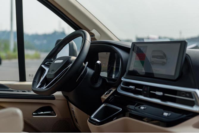 为了让用户感受到每一次出行亦是享受,聚星客车的12.3寸高清触控大屏,搭载第3代IVECONNECT智能交互系统,集成腾讯TAI、车载微信、智能导航、可生长模式(FOTA远程迭代升级)等功能,支持语音交互,行车时带来不一样的娱乐性和互动性;四幅式多功能方向盘两侧功能区集成了智能巡航、AI唤醒、频道切换、蓝牙电话、音量调节等诸多智驾功能。