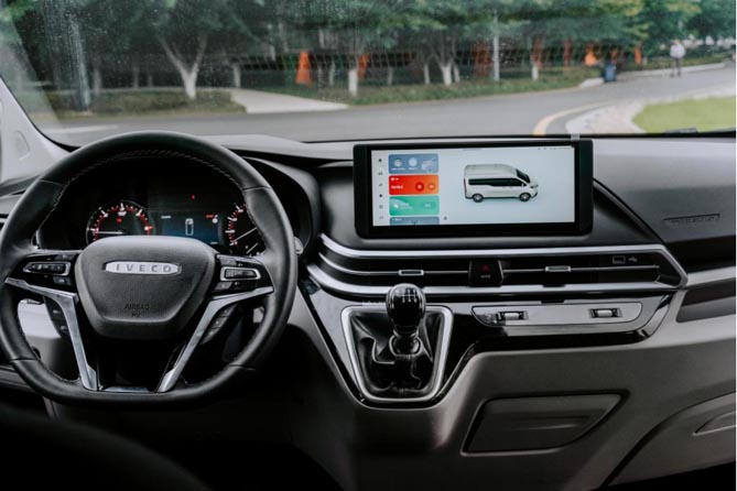 聚星多用途乘用车拥有各种智能化配置,12.3寸高清触控大屏,搭载第3代IVECONNECT智能交互系统,集成腾讯TAI、车载微信、智能导航、可生长模式(FOTA远程迭代升级)等功能,支持语音交互,不仅带来大气震撼的视觉效果,尤其在商务场景下更显潮流科技感;四幅式多功能方向盘两侧功能区集成了智能巡航、AI唤醒、频道切换、蓝牙电话、音量调节等诸多智驾功能,为用户提供沉浸式的操控体验。