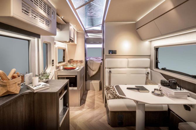 A型房车之所以能成为房车产品的塔尖品类,不仅因为他对开发团队的工程及制造能力提出了更高的要求,更是因为相比其它房车品类,带来最为直接的优势:更优雅的造型,更好的通过性,更高的空间利用率。