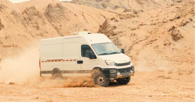 对于越野爱好者而言,其实每一款越野车型都有着它独特的性能特点和非凡魅力。然而,当提及全场景全地形应用时,就不是什么越野车都能够胜任的了,想要把崎岖山路、广袤沙漠、泥泞沼泽、乡间小道、城市大道和高速公路上统统拿下,就需要有卓越的全时四驱系统、强大的三把锁配置以及全地形轮胎等一整套软硬件设备的强力支撑,也只有类似依维柯越野车这种真四驱、真越野的车型才能当此重任。