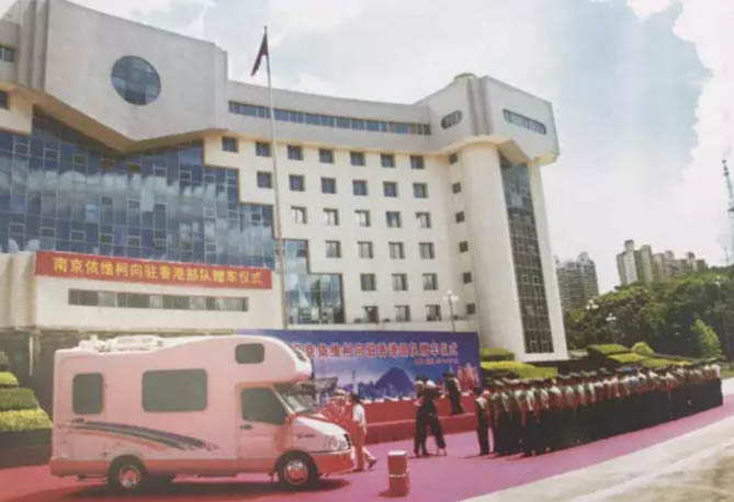 1997年7月1日,中央电视台对香港回归中英政权交接仪式全过程直播,南京依维柯也组织全体员工们进行了收看。当零点钟声敲响,中方指挥官一声令下,电视中出现了跟随在指挥车之后,一辆接一辆白色的依维柯轻客“排队”过关进驻香港的画面,当时30辆车一共载了510名驻港部队官兵。看着这激动人心的一幕,远在南京的依维柯工厂里响起了经久不停的欢呼。