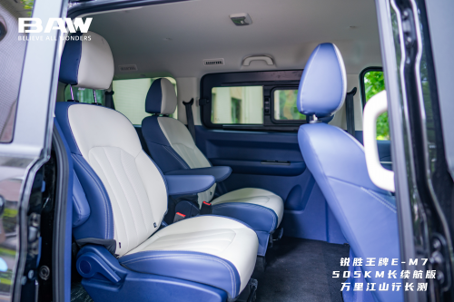 此外,就锐胜王牌E-M7全系列谱系来说,它提供了320km、401km和505km三种续航版本,全面覆盖了更广泛的用户需求。无论是城市内的短途接驳、机场火车站的接送服务,还是跨城的长途客运,锐胜王牌E-M7都能凭借其出色的续航能力,确保车辆在任何场景下都能稳定、高效地运行。这种全面的续航覆盖,不仅为用户提供了更加便捷、无忧的出行体验,更为定制客运市场带来了全新的解决方案。