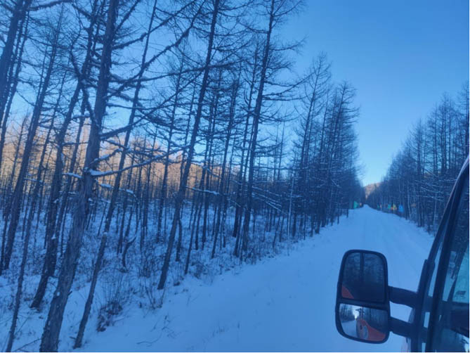 继续行驶,我们来到了“冷极小镇”满归镇。这里的冬天异常寒冷,气温常常降至零下40度。在这样的极端环境下,依维柯4×4的发动机依然能够稳定运行,其加热系统保证了车内的温暖,为我们提供了一个舒适的工作环境。在这片冰天雪地中,依维柯4×4就像是一团温暖的火焰,照亮了前行的道路。
