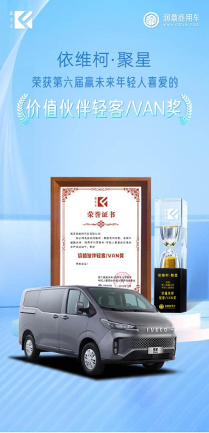自上市以来,依维柯聚星助力用户创造价值、收获幸福,此次获得“第六届赢未来-年轻人喜爱的价值伙伴轻客/VAN奖”,是终端用户对聚星高价值的认可。未来,聚星也必将以更好的陪伴,回馈用户的肯定与喜爱,助力更多“有维新青年”奔赴理想生活。
