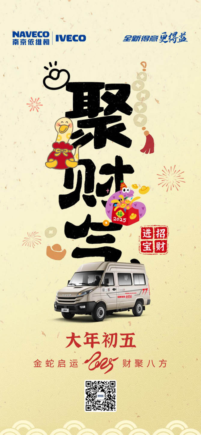 依维柯得意那独具特色的聚宝盆前脸,看着就喜庆又招财。前脸整体造型圆润饱满,线条流畅自然,恰似象征财富的聚宝盆,寓意着财富源源不断地汇聚而来。两侧的大灯炯炯有神,仿佛时刻在洞察着前方的财富之路。开着依维柯得意出门,新年氛围感直接拉满,坐在驾驶座上,整个人也活力满满,心里满是对新的一年的期待!