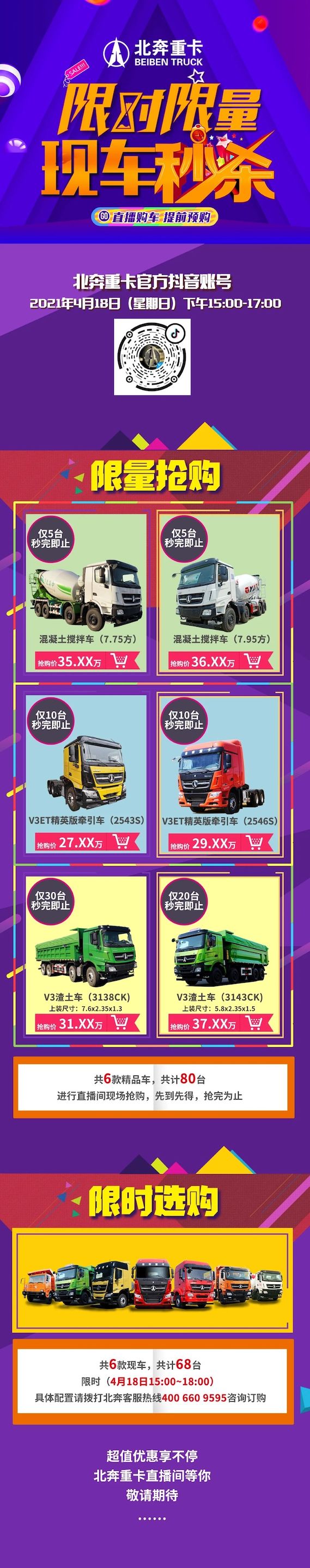 超值优惠享不停,本周日北奔重卡直播间等你~