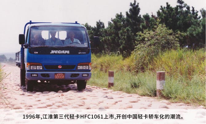 江汽集团深耕汽车行业59年,数次转型发展的重要节点中,轻卡都是重要的推动者:上世纪六十年代,打造安徽省第一台2.5吨载货轻卡;上世纪九十年代,开创中国轻卡轿车化潮流,在改革开放的浪潮中大放异彩;进入21世纪,轻卡全系车型不断推陈出新并畅销海内外,成为江淮汽车的核心业务板块以及振兴中国汽车品牌的重要力量,得到了一千万卡车司机的关注与信赖。
