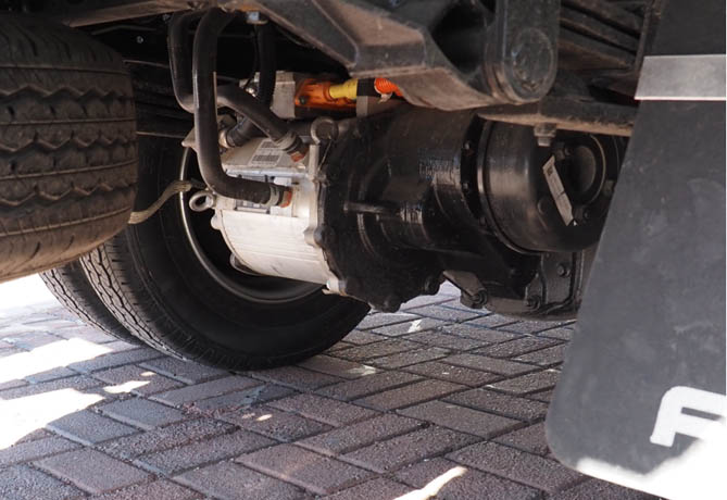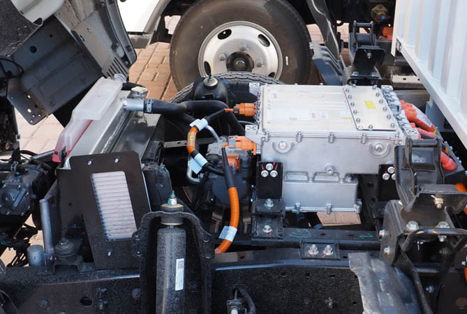 欧马可智蓝EX纯电轻卡搭载的宁德时代64/77度电高能量密度的中置单包电池,进一步降低电流损失,续航里程可达230km+/270km+。驱动系统采用了整体集成式电驱桥,取消了传动轴,有效提升了传动效率,配合扁线绕组永磁同步电机,功率密度更高,工况效率更优。