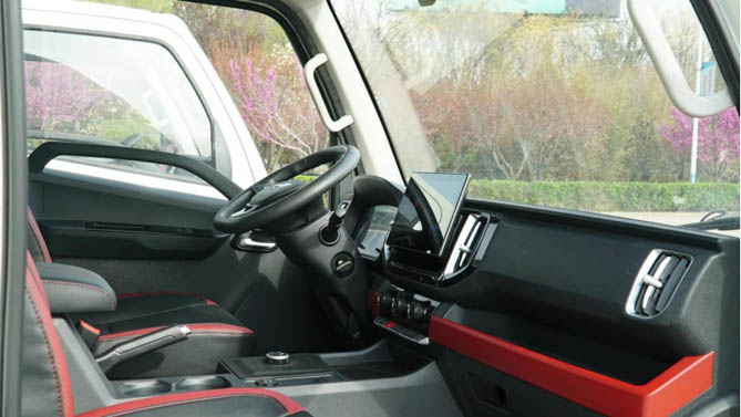 4.2米货厢车型,并采用4.5T后桥、高强度车架、前3后5+2板簧,拉2-3T货简直易如反掌,完全媲美纯电轻卡的装载能力。像商超、餐饮等配送业务,选择这种重载型一趟可以帮你拉得更多,大幅提升了运输效率。