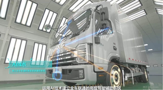 帅铃S7智驾版采用前视摄像头+毫米波雷达+EBS/ADAS集成控制器,集成ACC自适应巡航、LKA车道保持辅助、AEB预先紧急制动等多种功能,从根本上提升物流运输的安全性、可靠性和舒适性。
