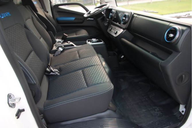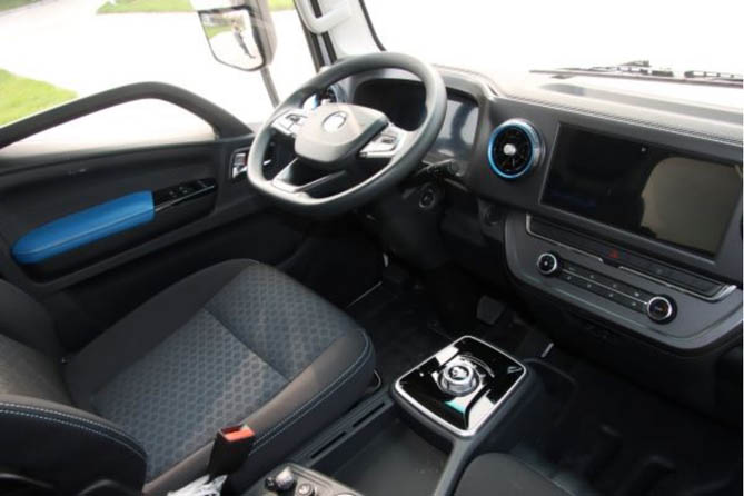 10.25寸中控大屏带有影音娱乐功能,支持蓝牙、手机互联,还集成了辅助驾驶控制功能,像全景环视系统、冷藏车的冷机远程控制等,以可视化和智能化的技术助力车辆高效率运营。