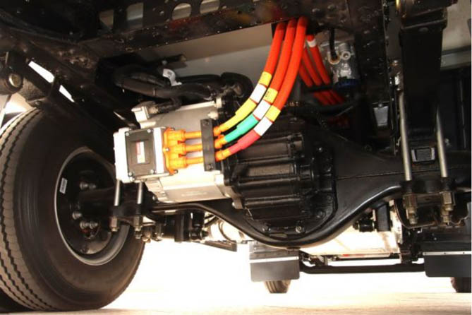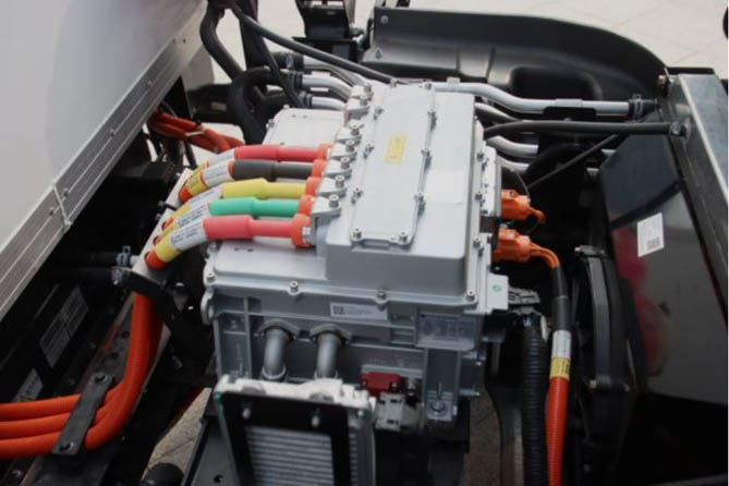 作为车辆最为核心的电力电子集成模块(PEU)来自于福田自主研发,集成了VCU(整车控制器)、MCU、DCDC、OBC及配电功能,通过先进的策略控制,实现整车的高效节能运行。