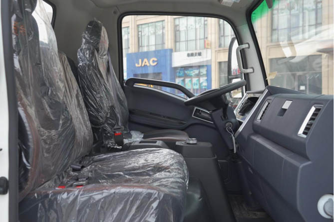 进入车内,江淮新能源轻卡EK7的座舱设计还是紧跟潮流。7寸液晶仪表可以选配10寸中控屏,用起来还是挺顺手的;搭载1995mm驾驶室,匹配旋钮换挡,放倒座椅铺上随车自带的睡垫后,一下子就可以形成一个大卧铺,装卸货时休息更舒服了。