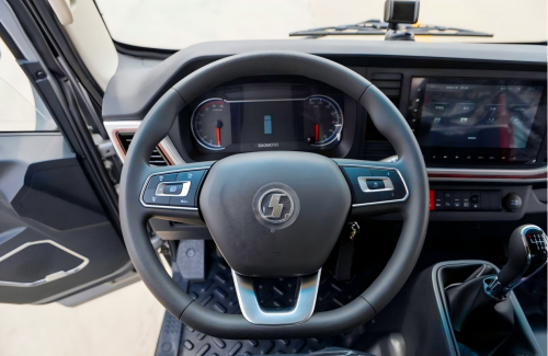 同时,车辆内部的设计同样细腻入微,尽显关怀。气囊主座椅采用皮质材质,配备扶手及分体式头枕,打造出舒适的驾乘空间。多功能组合方向盘操作便捷,增强了安全性。其中定速巡航功能,让卡友在长途跋涉时轻松减负;而10吋多媒体大屏与倒车影像的搭配,让驾驶更舒心、安全。此外,自动恒温空调的应用,进一步提升了驾驶的愉悦感,让卡友享受到轿车级舒享驾乘体验。