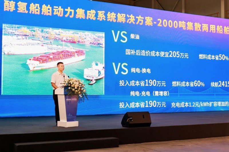 特别是在船舶领域,当前我国内河老旧船舶存在排放污染、水体污染、能耗高、噪声污染等痛点,行业新能源渗透率低。国家及地方政策接连出台,要求加快推动新能源船舶推广应用。远程打造的醇氢电动系统船舶解决方案,以清洁能源甲醇为燃料,拥有绿色、高效、节能、无里程焦虑等优势,并获取中国CCS首张M100甲醇单一燃料型式认证证书,成为新能源船舶最佳解决方案。
