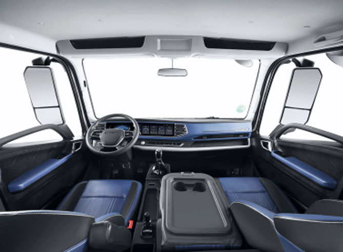 领航大G-F28T气体机轻卡全面优化发动机NVH,全转速段优于柴油车5分贝;配备声学包地毯,车门密封性大幅提升,打造了轻卡天花板级的NVH水平;优化了方向盘的倾角、握感,配合最优的座椅高度,打造最舒适的坐姿;可选装气囊减震座椅(带通风和电加热功能),驾乘舒适性全面提升;变速箱匹配多锥同步器,换挡非常轻便;行业内首配倒挡同步器,匹配85缸径转向器,转向轻便。在长途运输中,领航大G-F28T气体机轻卡驾驶室内的舒适如同一个移动的家,让卡友们在疲惫的运输途中也能得到身心的放松,每一次驾驶都是一次温馨的旅程。