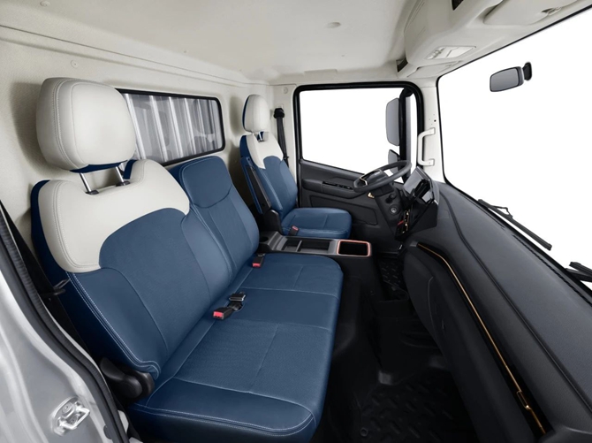 在外观与舒适性设计上,潍柴蓝擎X7新一代纯电轻卡全新开发设计。2120mm宽体驾驶室设计,不仅提供了宽阔的驾驶空间,视野也更加宽阔,保障用户驾驶安全;驾驶室配置丰富,气囊减震座椅过滤路面颠簸,缓解驾驶疲劳;同时,搭载行业集成怀挡设计换挡机构操作便捷更安全,平地板设计+贯穿式座椅设计,让驾驶室秒变舒适单人间,充分满足用户舒适驾乘需求。