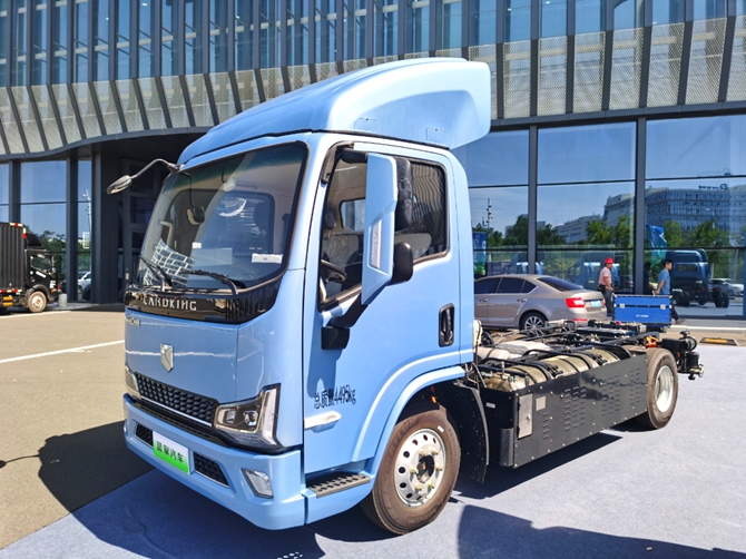 潍柴蓝擎EH轻卡-氢燃料车型拥有“潍柴VCU+潍柴巴拉德燃料电池+潍柴/汇川多合一+汉德免维护电驱桥”的黄金动力链,确保动力输出稳定可靠;创新氢瓶侧置设计,不占用货箱空间;520L氢瓶容量提供超长续航,为城市配送提供零排放解决方案。
