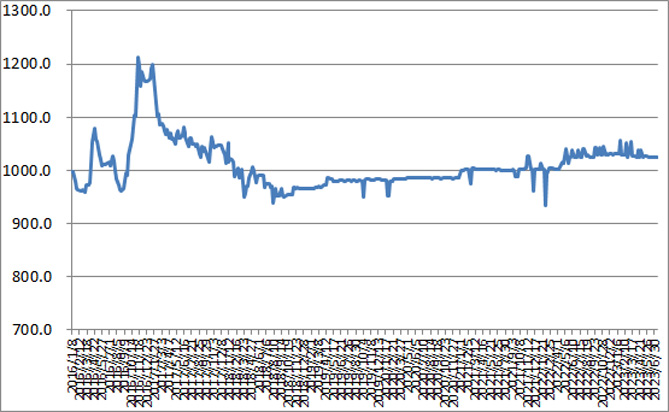 图1 2016-2023年各周中国公路物流运价指数