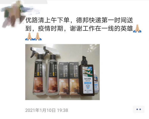 消毒液上午下单晚上送达,被客户朋友圈点赞