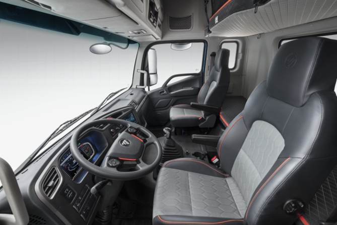 时效高的要求,导致卡友长时间驾驶,容易疲劳;而且绿通交货时间大多数都在凌晨12点至凌晨3点,更需要舒适的驾驶环境。因此,欧曼行星中卡沿用欧曼家族化外观与内饰,带来以人为尊的舒适体验。整车采用透镜LED大灯带日行灯,亮度更高、照射范围更广;升级双侧密封,噪音减少30%;水循环加热油箱,冬天一把着车;一体式电动调节及加热后视镜,雨天不起雾,自动除霜,让卡友享受更惬意的驾乘感受。