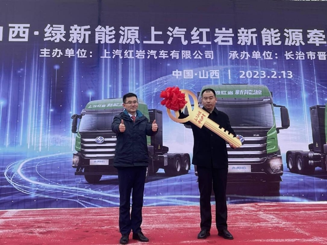 本着低能耗、低排放、低成本的发展方针,着力于长治当地的经济发展和蓝天碧水,绿新能源科技(山西)有限公司将在未来两年内持续增加上汽红岩新能源运营车辆,用于其公司所在的潞铁现代智慧物流园内,大宗煤炭、矿石等集装箱的国道短倒运输。该应用项目的成功开展,将助力潞铁现代智慧物流园成为中东部地区最大的物流煤炭交易、运输平台,更将在长治区域竖起零碳绿运的示范典型,作为山西省试点项目进行全省推广。上汽红岩汽车有限公司总经理楼建平在致辞中表示:“今天,以新能源牵引车批量交付为起点,我们有理由相信,在将来,我们与潞城区政府、山西绿新能源携手,共同推进新能源生态圈建设,在长治这块红色的土地,‘太行精神’将放射出新时代的光芒。”