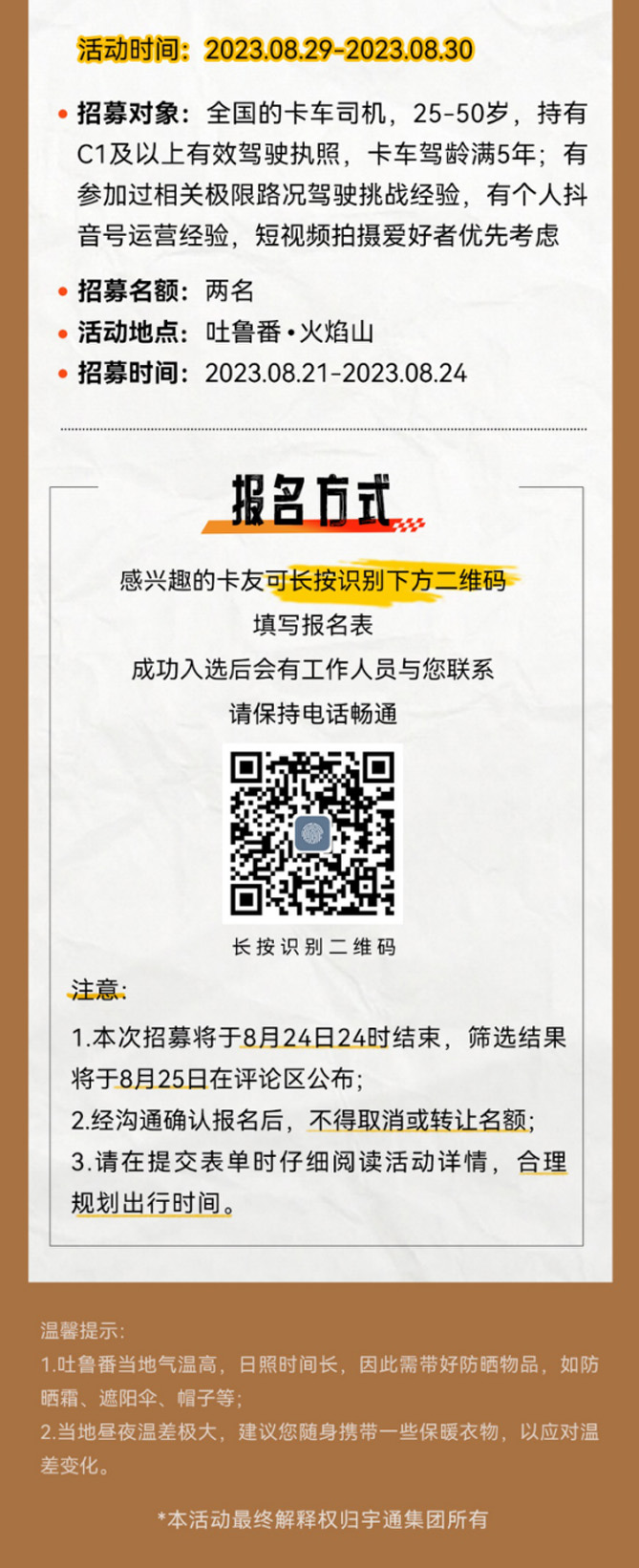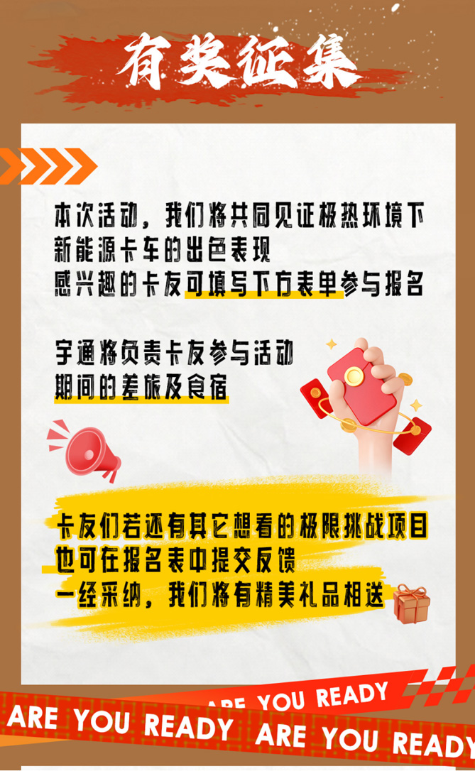 敢来吗?宇通新能源卡车火焰山极限挑战全网招募卡友!