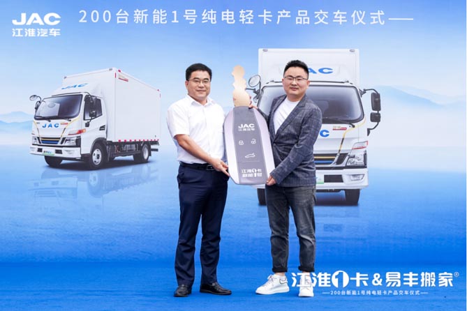 江淮1卡将“新能1号”纯电轻卡金钥匙交付易丰搬家
