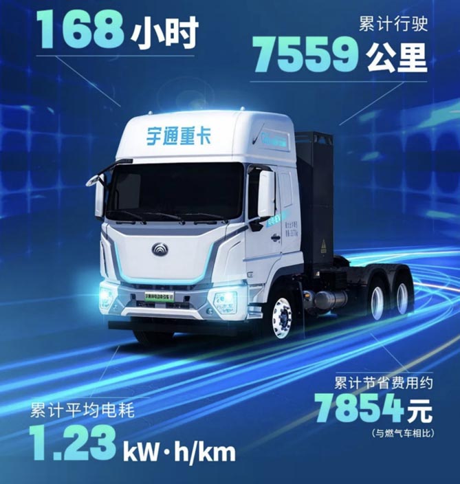 全国首个7x24小时运营挑战!宇通新能源重卡日省1100多元