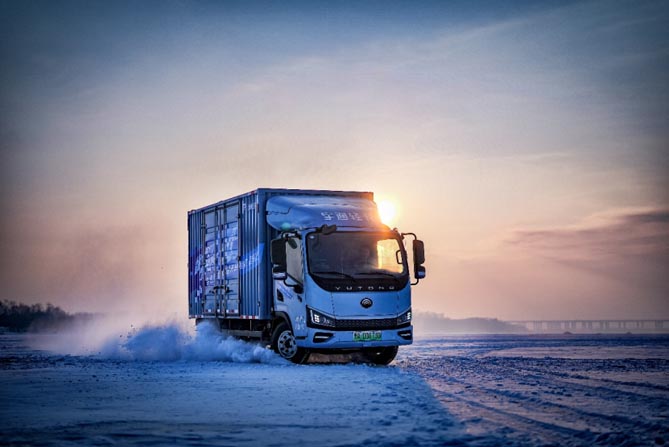 特别是全国首个正向研发的电动卡车——宇通新能源轻卡,继在吐鲁番成功挑战地表70℃极热考验后,又经受住了东北地区低达-30℃的极寒考验,长时间运营续航里程丝毫不打折扣,成为首个跨越100℃温差挑战的新能源轻卡。