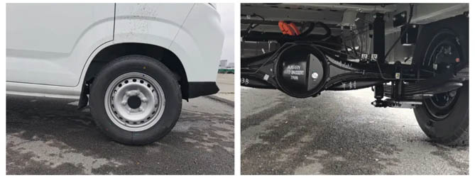 承载方面,开瑞江豚E7采用的195/70 R15 LT轮胎,轮胎层级达到12PR,承载力相当于轻卡级别。底盘采用6片加厚板簧,前文提到能装载1375公斤,显然这样的底盘更让司机们心里感到踏实。