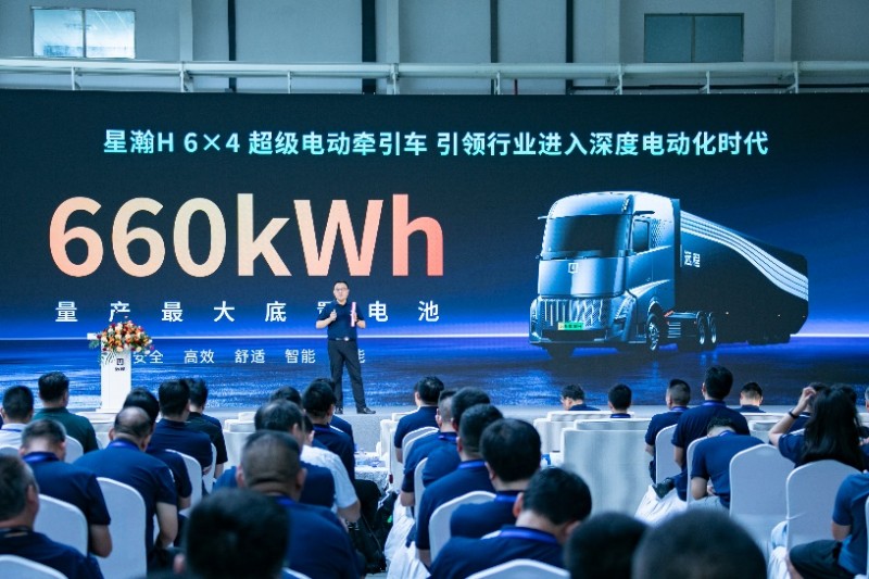 电动重卡领域,远程星瀚家族旗下超级电动牵引车是行业首款底置换电车型,可覆盖440-660kWh电池,作为市场上最可靠的底置电池+电驱桥产品,历经4年20多个场景验证,依托骐骥换电网络和自研大功率快充技术,可实现极速补能,换电仅需5分钟。