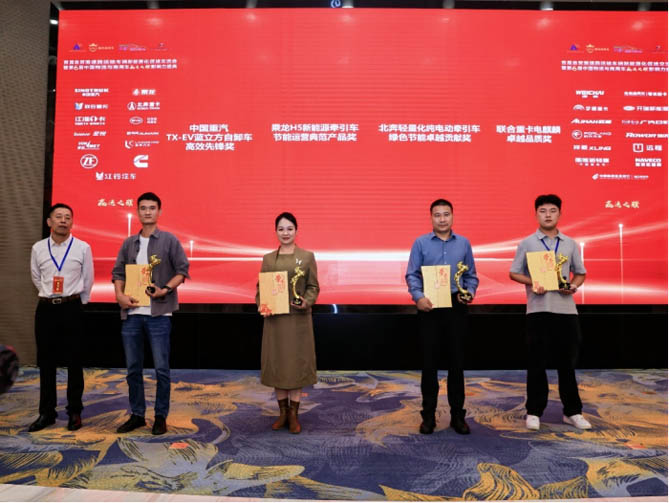 其中,重卡类,中国重汽TX-EV蓝立方自卸车获得高效先锋奖,乘龙H5新能源牵引车获得节能运营典范产品奖,北奔轻量化纯电动牵引车获得绿色节能卓越贡献奖,联合重卡电麒麟获得卓越品质奖;