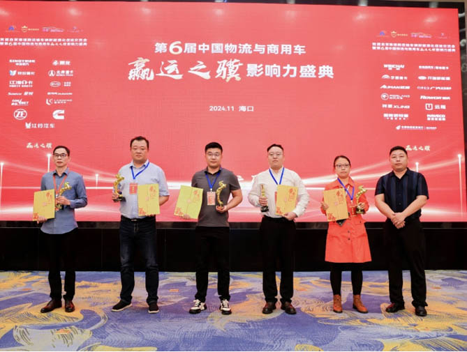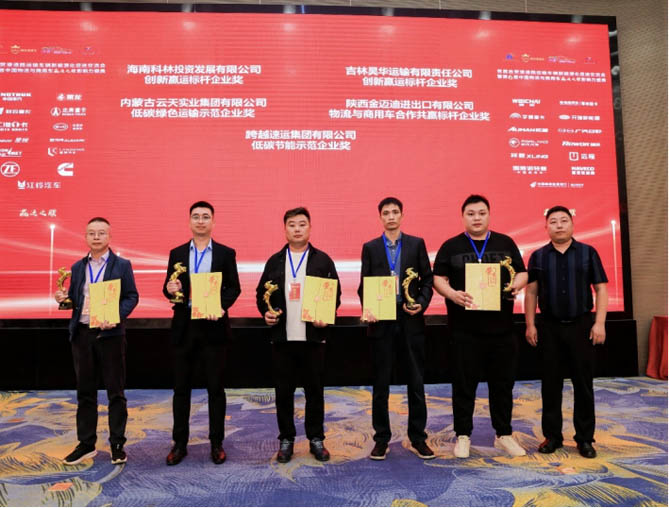物流企业类,海南科林投资发展有限公司、吉林昊华运输有限责任公司,获得创新赢运标杆企业奖;内蒙古云天实业集团有限公司获得低碳绿色运输示范企业奖;跨越速运集团有限公司获得低碳节能示范企业奖;陕西金迈迪进出口有限公司获得物流与商用车合作共赢标杆企业奖;