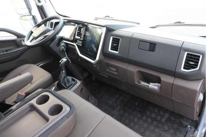 开头说到,曲师傅年纪并不大,算是一位比较年轻的卡友,因此在审美上眼光比较高,进店看到骏铃金饭碗的第一眼,他就被骏铃金饭碗大气的造型吸引了。里里外外看了一遍后更加惊喜,按曲师傅的话来说就是“质量可靠、内饰好看、配置高”。年轻卡友都喜欢科技感,骏铃金饭碗的导航大屏、感应大灯、感应雨刷等各种配置确实用起来更偏向乘用车,舒适性也很高。卡友出车经常一天10几个小时都在车上,午休也经常需要在车上解决,高舒适性和各种科技配置绝对是必不可少的。