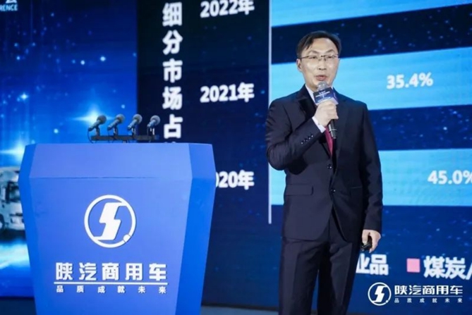 陕西汽车控股集团有限公司党委书记、董事长袁宏明陕汽商用车2023年商务年会上,陕西汽车控股集团有限公司党委书记、董事长袁宏明分享了企业战略发展报告,陕汽商用车结合当前的实际情况以及未来的发展规划,提出了用五年时间突破10万辆,新能源占比突破40%的战略目标。