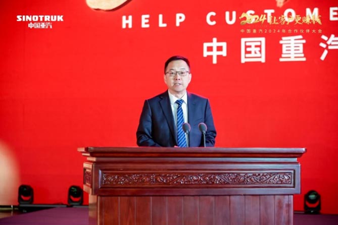 面对2024年国内外市场持续带来的挑战。谭旭光表示,中国重汽唯有和合作伙伴继续迎难而上,才能再次完胜。这里,最大的秘诀就是携手合作伙伴“从源头为客户着想,让客户赚钱,让我国2000多万重卡司机获得幸福感,让全国正在运行的商用车更节油,让我们的快递物流更高效!“
