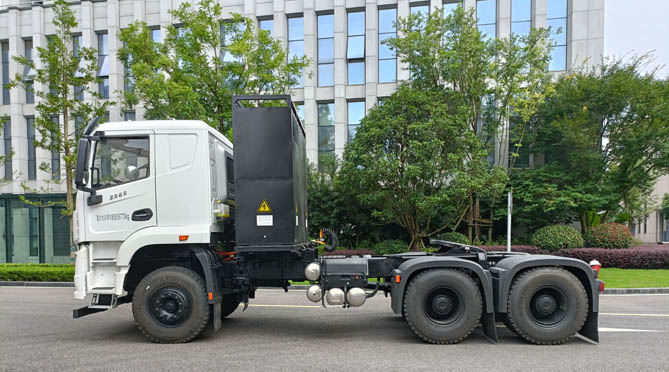 这款车的另一重要优势是动力强、适应性广。其采用高功率密度电池,最高效率97.4%;使用扁线电机,重载爬坡,散热更好;同时,匹配法士特6E240变速器,安全可靠又高效。