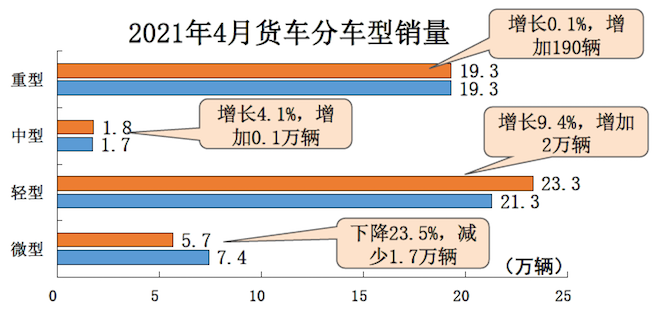值得注意的是,与2019年同期相比,商用车产销同比增长27.8%和29.1%,增幅比一季度扩大1.8和2.2个百分点。可以说,增速逐渐减缓,但依然保持稳中向好发展态势。