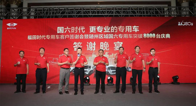 7月6日,以“国六时代,更专业的专用车”为主题的福田时代专用车客户答谢会,暨随州区域国六专用车突破8000台庆典正式举行。